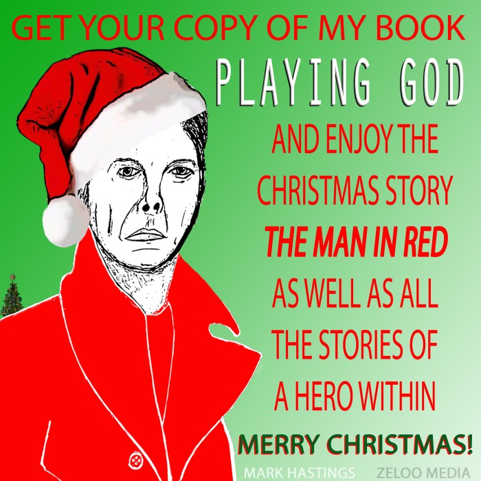 Get your copy of my book ‘Playing God’ – featuring the Christmas story “The Man In Red” – online in paperback and as an ebook from Amazon: https://amzn.to/383gsII